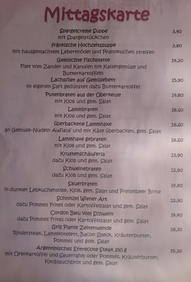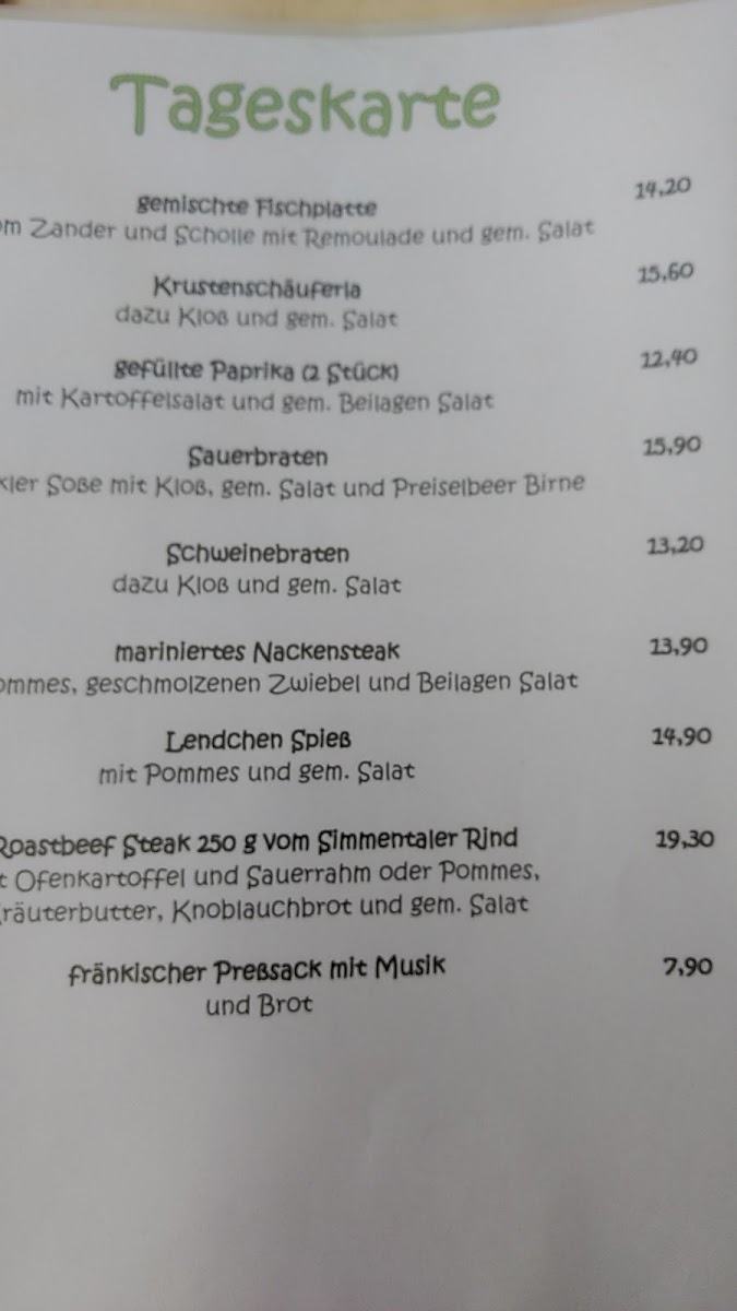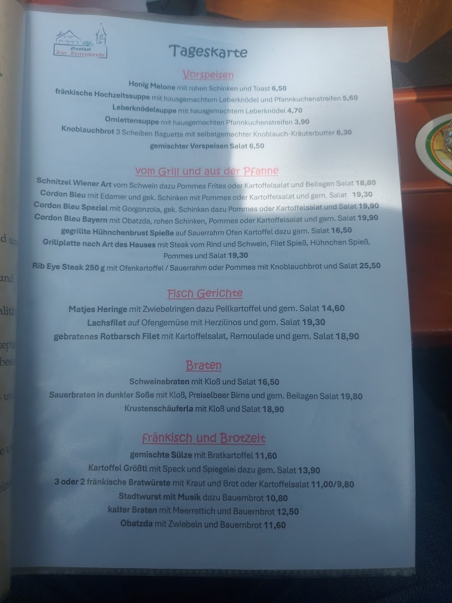 Hungry diners can also explore a rotating daily menu, offering a wide variety of local flavors. Highlights include the exquisitely prepared Sauerbraten, praised for its rich sauce, and the freshly flattened Wiener Schnitzel, both served with attentiveness that reflects the friendly ambiance. Guests appreciate the extensive selection of local beers that perfectly accompany each meal. With reasonable prices and easy accessibility, including free parking, Gasthof Zur Zeitenwende promises a memorable dining experience for all.